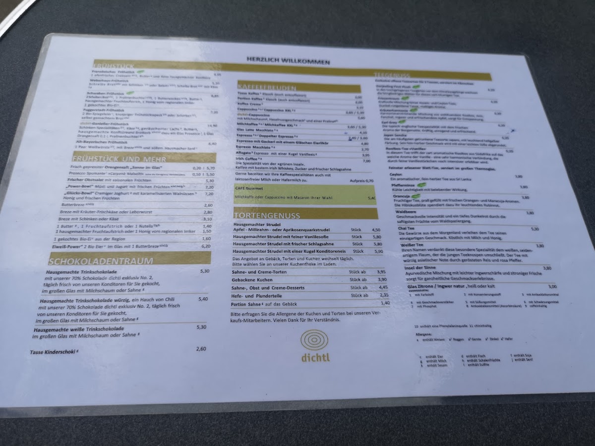 For breakfast enthusiasts, Café Dichtl serves a unique specialty called “Frühstück I’m glas” for €25 per person, a creative idea that elevates your morning meal experience, despite some critiques on pricing. The breakfast is a delightful spread featuring fresh-baked breads (Broetchen) and an array of fresh ingredients that come together to create a truly satisfying meal. Reviews from patrons like James Ayres reflect varied experiences, with comments on the inspiring concept coupled with the need for a little polishing in service timing.